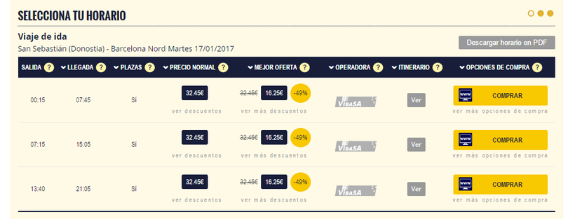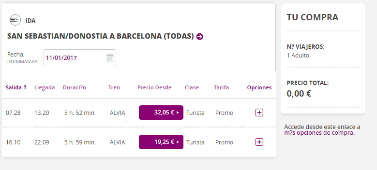 Из Сан-Себастьяна в Барселону курсирует железнодорожный транспорт. Между городами значительное расстояние, поэтому прямых поездов есть лишь несколько. Первый поезд отправляется в семь утра, а последний полдесятого вечера. Количество доступных железнодорожных рейсов зависит от дня недели, например, в выходные есть больше поездов. Поэтому всегда нужно детально смотреть расписание и доступные места на сайте испанской компании Renfre, которая и занимается перевозками пассажиров. Добраться таким транспортом в Барселону можно за шесть часов, но, если ехать с пересадками в Сарагосе или Ируне, то получиться дольше. Я рассматривала только прямые рейсы.