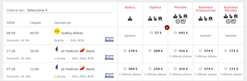 Между городами налажено также и авиасообщение. Летает один самолет, которым можно добраться всего лишь за час. Можно конечно лететь и с пересадками, например, в Мадриде, но по времени получается дольше. Расписание отправок этого самолета зависит от дня недели, в один день он улетает утром, а уже в следующий - под вечер. Поэтому, к сожалению, я здесь точно указать расписание не могу. Лучше смотреть на сайте авиаперевозчика - Vueling.