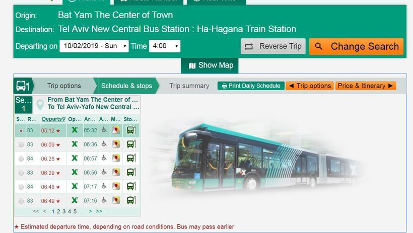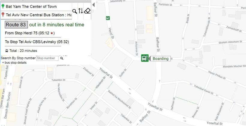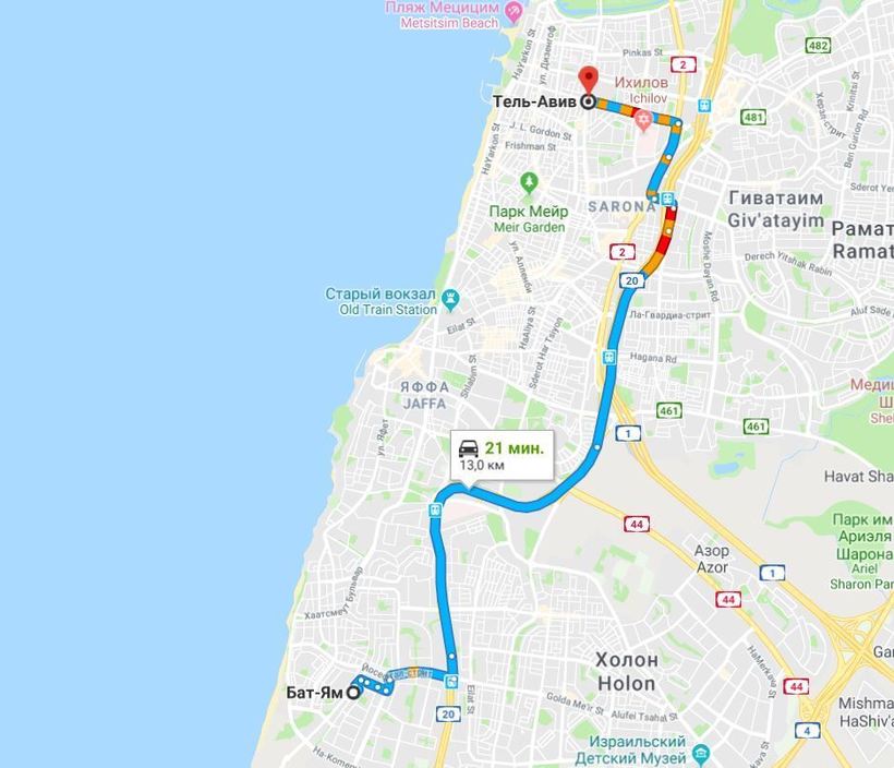 Ниже приведена информация о том, сколько часов вам потребуется, чтобы добраться от Бат-Яма до Тель-Авива, а также приведена примерная стоимость проезда (средняя цена билета) на том или ином виде транспорта.