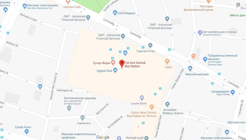 Прибывают же автобусы на автостанцию в Тель-Авиве по адресу ул. Левински, 108.