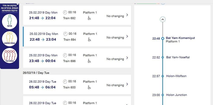 Вот скриншот с сайта израильских железных дорог с небольшой частью расписания: