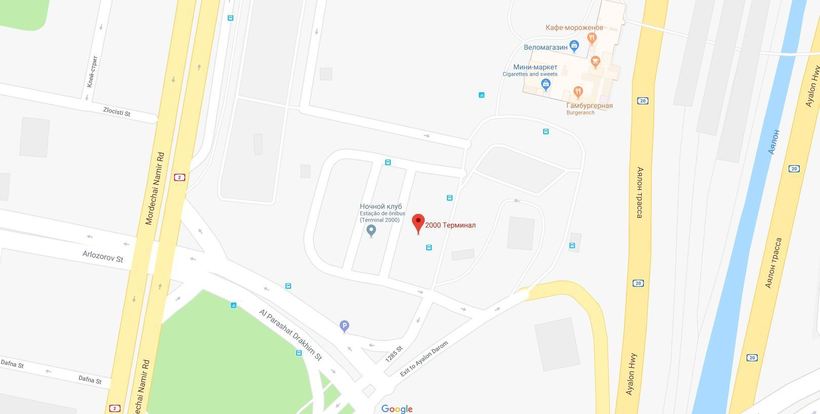 Здесь нужно будет сесть на автобус № 83 или № 84 и ехать до Тель-Авива, а точнее до станции Tel-Aviv Yafo, расположенной вот тут:
