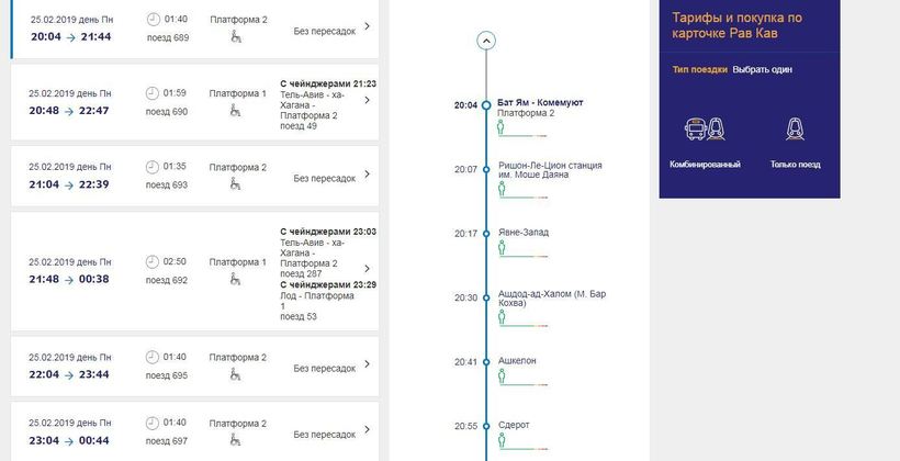 Теперь предлагаю посетить сайт Израилських железных дорог, тут есть расписание: