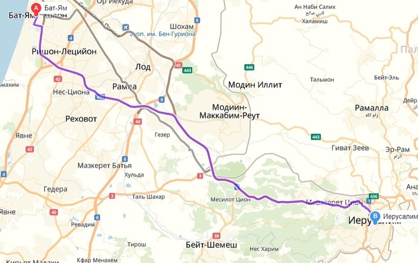 Бат-Ям — Иерусалим, Иерусалимский округ — маршрут на карте