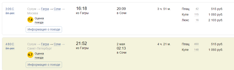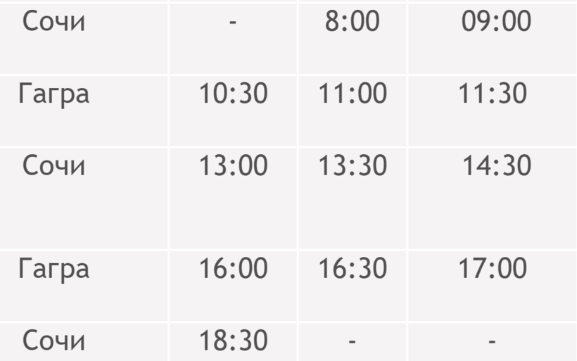 Если паромы для вас страх-страшный, то можете первую часть пути изменить. Из Гагры до Сочи можно добраться поездом, автобусом международным или местными маршрутками. С ж/д станции идут два прямых поезда. Расписание может меняться, всё зависит от сезона.