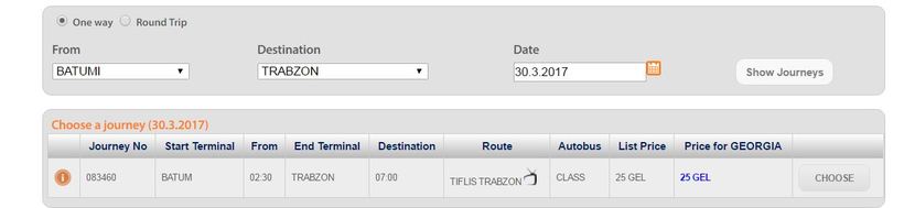 Ниже приведена информация о том, сколько часов вам потребуется, чтобы добраться от Батуми до Трабзона, а также приведена примерная стоимость проезда (средняя цена билета) на том или ином виде транспорта.