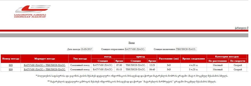 Продажа билетов онлайн для зарегистрированных пользователей существует на сайте грузинской ЖД, но для нас это практически невозможно. Сама я не пробовала, но читала на форумах, что наши карты для оплаты не проходят. Проще всего будет обратиться непосредственно в кассу вокзала.
