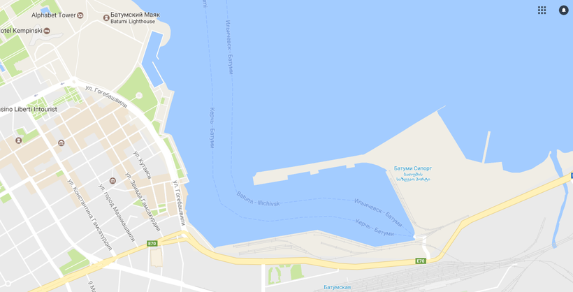 Летом 2016 года ситуация была такова, что со стороны Грузии в Абхазию въехать было ну никак нельзя, поэтому ни один автобус не желал вести нас на родину этим путём, несмотря на то, что расстояние между Батуми и Сочи меньше 400 километров. Единственным выходом оставался паром. Порт Батуми находится в центре города, найти его легко, особенно по ночам, когда здание блестит яркой подсветкой.