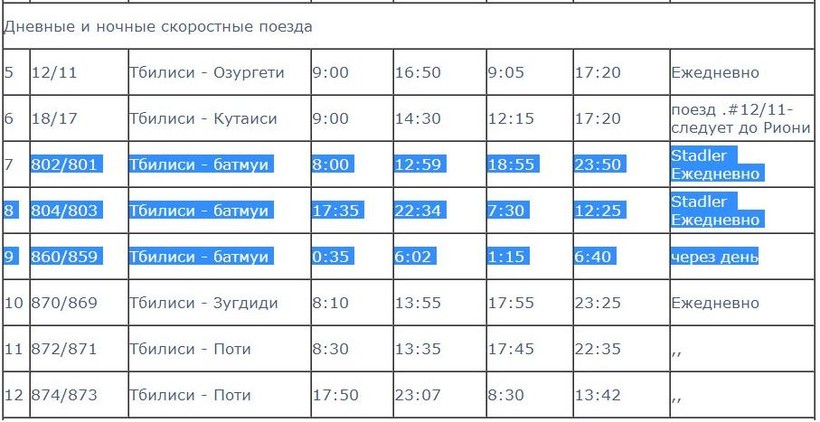 Ежедневно есть два поезда, которые выезжают с железнодорожного вокзала Батуми в полвосьмого утра и без пяти семь вечера.