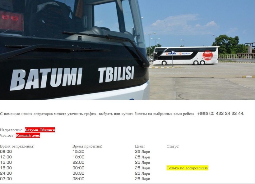 Маршрутки ходят от Нового автовокзала Батуми с утра до вечера, ночью рейсов нет. Но назвать конкретное время выездов не могу, так как официального сайта у них нет. Время в пути зависит от настроения водителя и наличия у него или отсутствия бесшабашности. Это не шутка, некоторые летают, что страшно становится, а некоторые соблюдают правила дорожного движения. Примерно, через 6-7 часов микроавтобус довезет вас до автовокзала Дидубе в Тбилиси (рядом станция метро с таким же названием). Конечно, это вам не рейсовый автобус, и особых удобств даже не ждите.