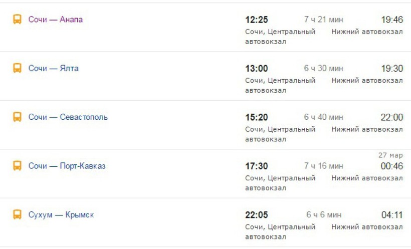 Раньше рейсы отправлялись в 10:00 по понедельникам и четвергам. Расписание может меняться, поэтому его лучше уточнять в порту Батуми перед поездкой. До Сочи мы плыли около шести часов. А вот в плохую погоду бывали случаи, когда катер шел намного дольше. Из Сочи в Геленджик можно добраться на автобусах, следующих в Анапу, Порт Кавказ или Крым. Вот фрагмент расписание рейсов, следующих из Сочи через Геленджик.
