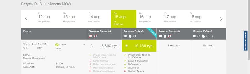 - Цена билета на рейс S7 стартует от 8890 рублей.