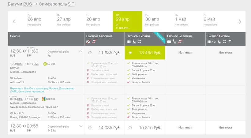 Сложность заключается в том, что из Батуми ежедневно вылетают самолеты в Стамбул, пару раз в неделю в Минск и по субботам в Москву. И прилетающих в Симферополь не так уж и много, это рейсы из Москвы, Сочи, Питера и других российских городов. Единственным городом где можно сделать пересадку является Москва.