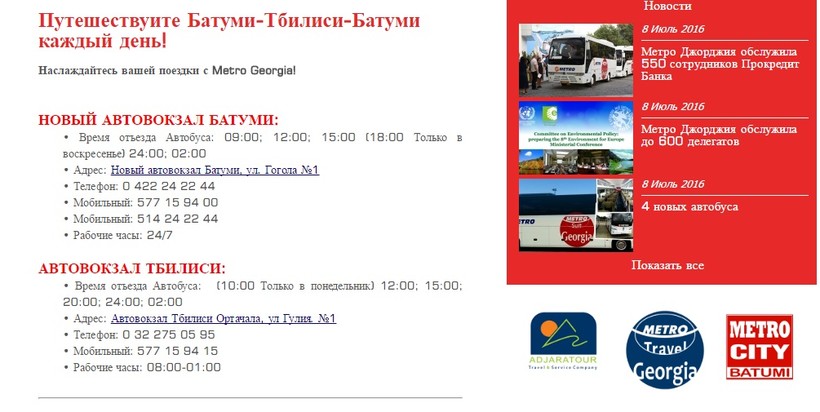 Сперва из Батуми нужно доехать в Тбилиси, как я говорила, это можно сделать на маршрутке или на автобусе. Автобусы Метро в этом случае намного удобны, так как они приезжают на главный автовокзал «Ортачала». Автобусы ездят несколько раз в день, их расписание можно посмотреть на сайте. Поездка займет около 5 часов.