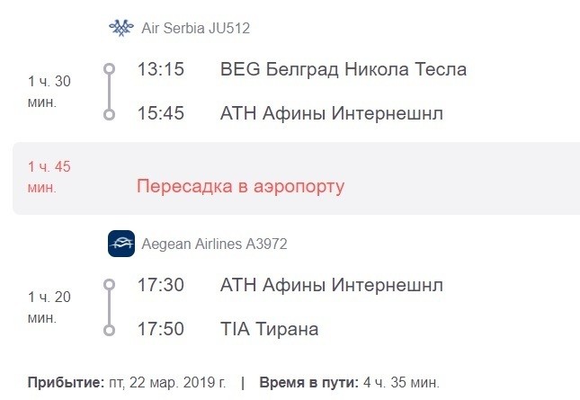 До Афин вы долетите с Air Serbia, а до Тираны с Aegean Airlines.