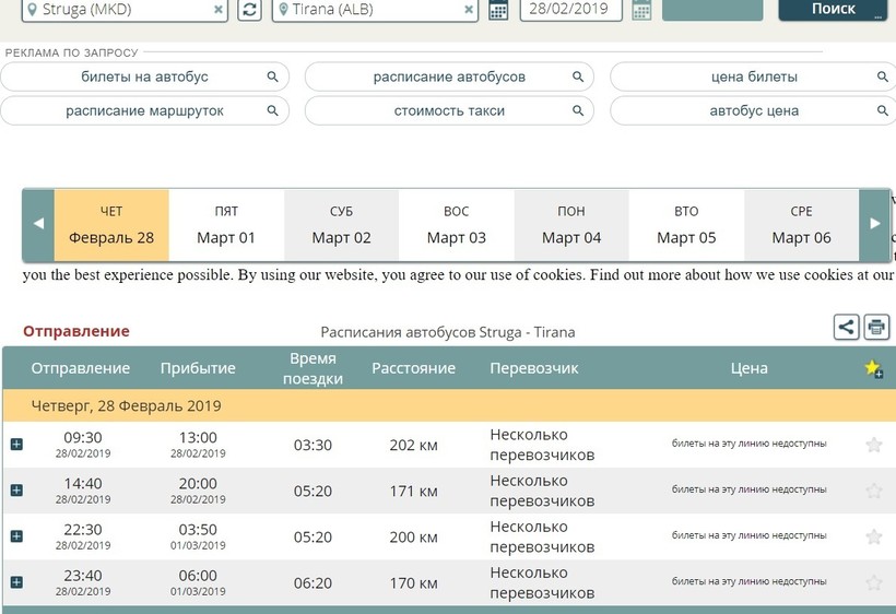 Это транзитный автобус, и останавливается он в городе Струга на небольшой автостанции, которая находится недалеко от улицы Маршала Тито. Отсюда же вы можете уехать дальше в Тирану. Есть четыре ежедневных рейса: один утром, один в обед и два ближе к полуночи. В дороге нужно будет провести от трех с половиной часов.