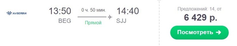 Билеты на самолет до Сараево от 10204 динаров (от 6429 рублей или 8,6 евро).