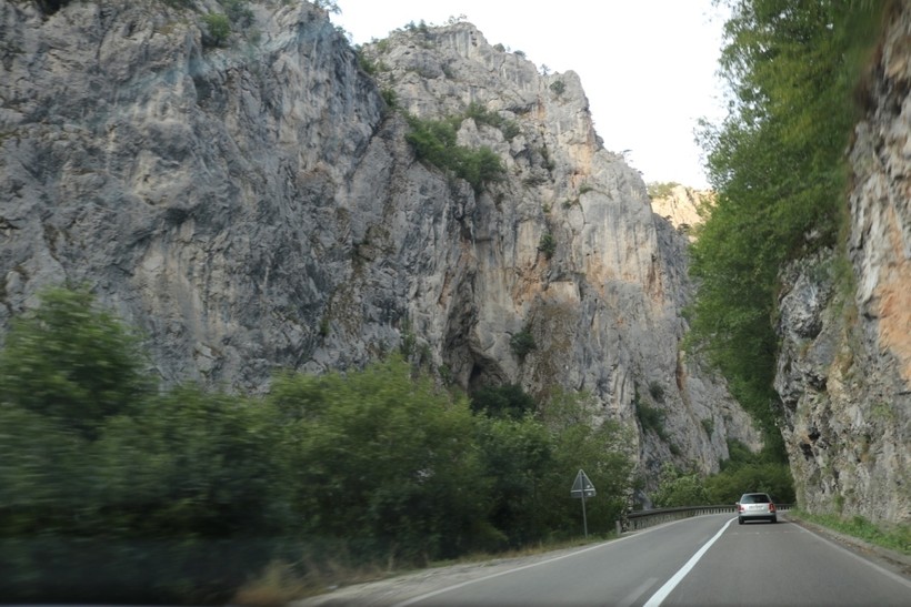 От Белграда мы двигались по шоссе № 22, это качественная трасса, почти везде 4 полосы, но особо не разгонишься — по пути все время встречаются маленькие города и поселки. От Пожеги местность становится все более гористой. Мы ехали по трассам 21 и 23 — дорога между скал, везде предупреждающие знаки об опасности обвалов.