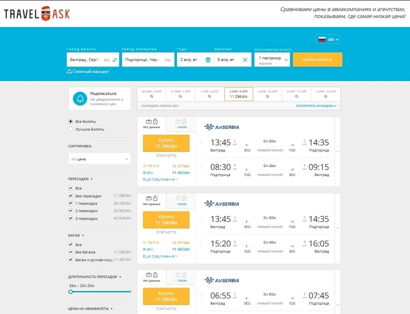На рейс Белградт — Тиват билеты продаются тут и на сайте AirSerbia.