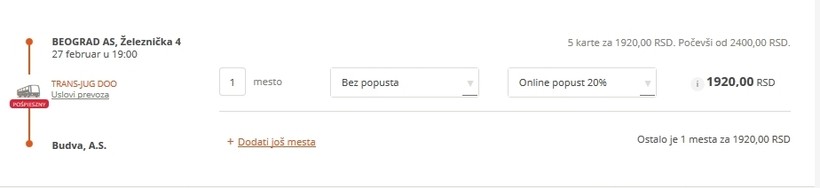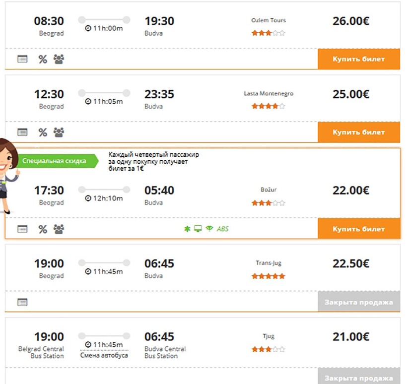 У перевозчика Trans-Jug билет в одну сторону стоит 1920 RSD (16,30 €).