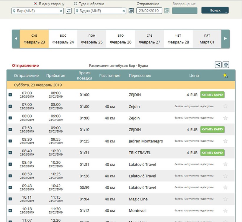 Приезд на автобусную станцию Будвы. Автобусы комфортабельные, но длится поездка 11–12 часов, никакого перекуса не предлагают. Хоть и экономно, но утомительно.