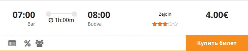 Ниже приведена информация о том, сколько часов вам потребуется, чтобы добраться от Белграда до Будвы, а также приведена примерная стоимость проезда (средняя цена билета) на том или ином виде транспорта.