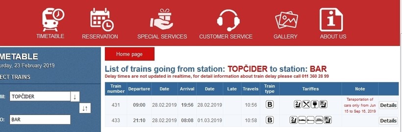 Из Белграда поезда уходят с ж/д станции Топчидер (и при поиске расписания нужно указывать именно станцию Topcider).