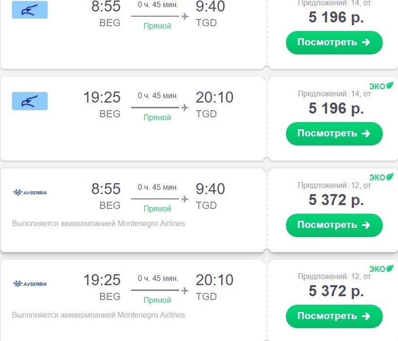 Билеты до Подгорицы от 8250 динаров (5200 рублей).