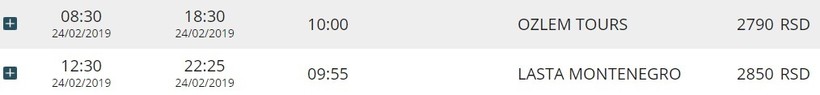 Ниже приведена информация о том, сколько часов вам потребуется, чтобы добраться от Белграда до Подгорицы, а также приведена примерная стоимость проезда (средняя цена билета) на том или ином виде транспорта.