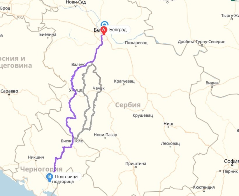 Расстояние между Белградом и Подгорицей составляет 174 километра или 108 миль по прямой и 435 километров или 270 миль по автодорогам.