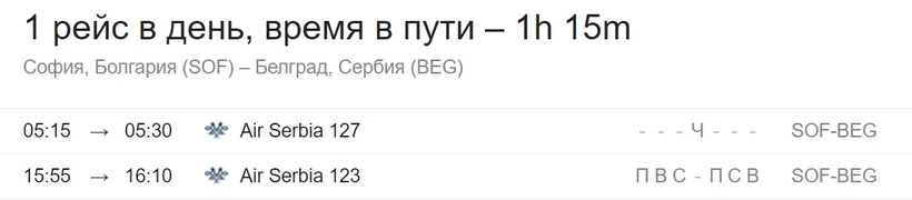Ниже приведена информация о том, сколько часов вам потребуется, чтобы добраться от Софии до Белграда, а также приведена примерная стоимость проезда (средняя цена билета) на том или ином виде транспорта.