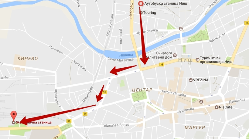 Знакомой автобусной компанией Матпу едем в тот же знакомый Ниш. Далее нужно с автостанции пройтись на железнодорожную. Это простая прогулка длительностью в 10 минут.