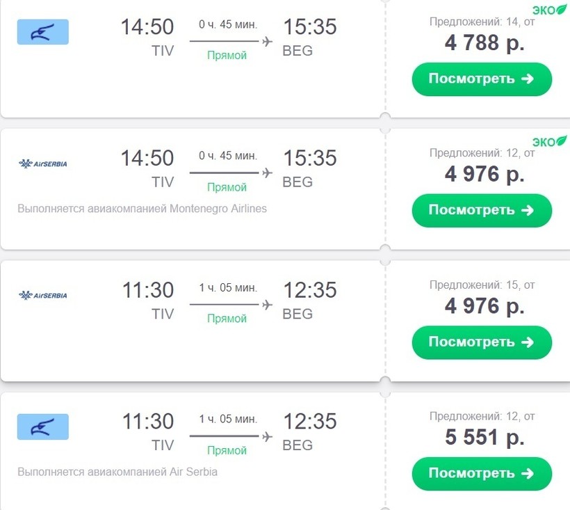 Авиабилеты Тиват – Белград