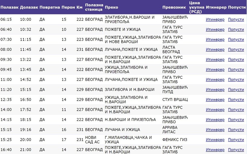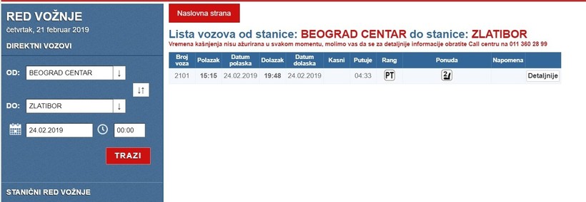 Есть один ежедневный поезд, который ходит до Златибора (ж/д станция находится в городке Кралеве-Воде). Отбытие ежедневно в 15:15. Прибудете вы на место в 19:48