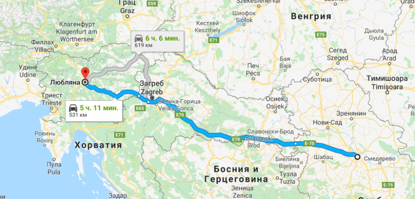Белград и Любляну разделяют 530 км и территория Хорватии, и с учетом пересечения двух границ такое расстояние на машине можно проехать за 6–7 часов.