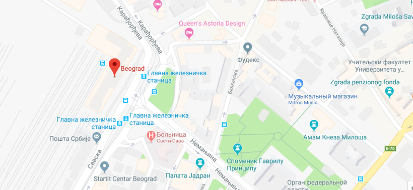 Отправляется поезд с Центрального ж/д вокзала Белграда, который находится по адресу Савски трг, 2, а прибывают поезда в Любляну также на Центральный ж/д вокзал на ул. Колодровска 11.