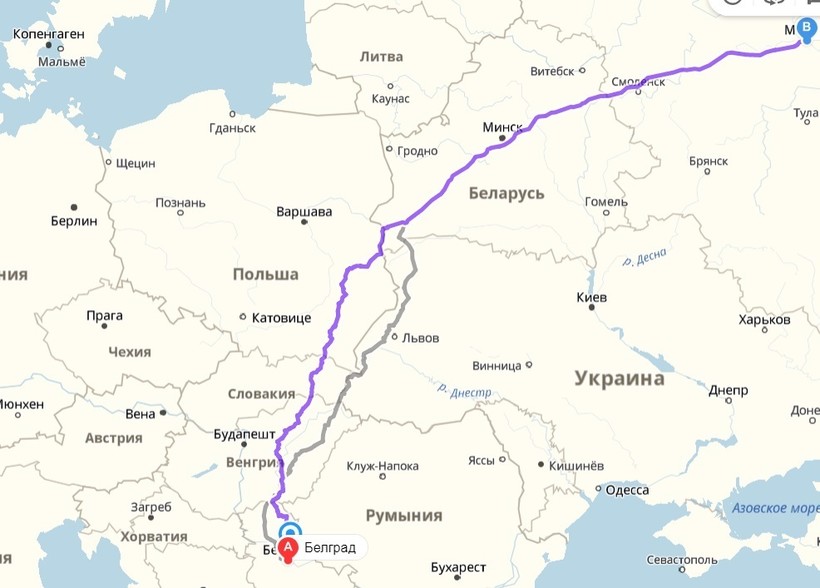 Не могу порекомендовать этот вариант и дело тут не в расстоянии (от Белграда до Москвы немногим более 2000 километров), просто придется пересечь границы пяти стран, включая Россию. Если вы гражданин Сербии, то тут не возникнет проблем — проезд без виз (Венгрия, Словакия, Польша, РБ и РФ), но россиянам визы нужны везде, кроме республики Беларусь. Плюс по этому маршруту есть платные дороги, также придется сделать несколько остановок на ночлег, что приведет к дополнительным тратам. Так что настоятельно советую рассмотреть мой следующий вариант путешествия в Москву.