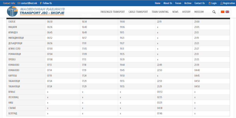 Есть один прямой поезд в сутки, который отправляется в 22:19 от ж/д вокзала Скопье.