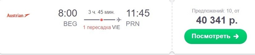 Прямых авиарейсов из аэропорта «Никола Тесла Белград» в Приштину нет, можно добраться только с пересадкой. Ее сделайте, например, в Вене. Дорога займет 3 часа и 45 минут, но билеты стоят очень недешево.