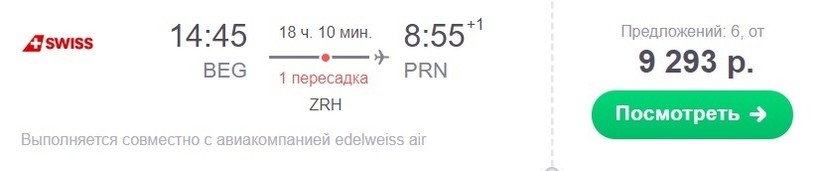 Билеты на самолет до Приштины от 14835 динаров (от 9300 рублей).