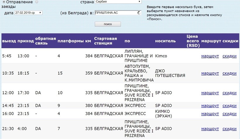 Поезда из Белграда в Приштину не ходят. В свою очередь советую добираться по этому маршруту на автобусе, по деньгам выходит вполне бюджетно.