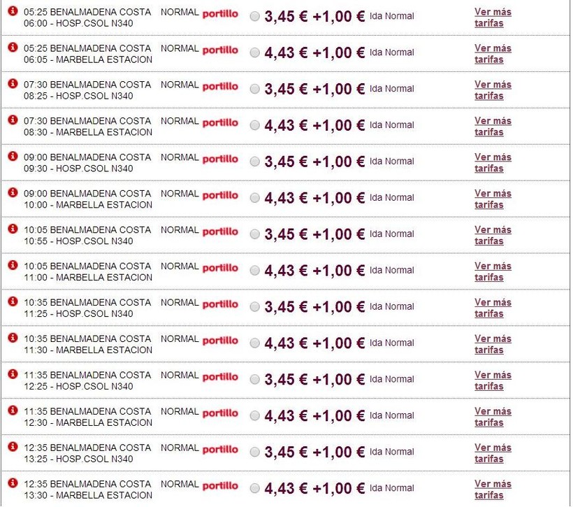 Билет в одну сторону до автовокзала Марбельи будет стоить 4,43 евро.