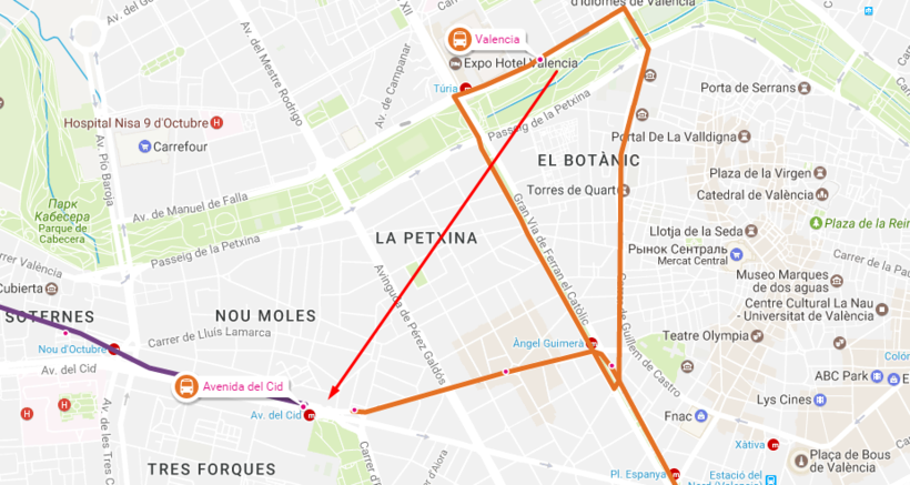В Валенсию раз в три часа курсирует автобус той же компании Alsa, в дороге полтора часа. А в самой Валенсии нужно ещё сделать две пересадки. На автобусе к станции метро