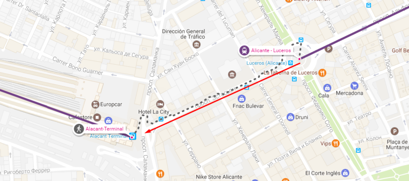 Прямого поезда в Мадрид нет, придётся ехать в Аликанте. В этом деле нам поможет трамвай, который курсирует с 6 утра до 10 вечера каждый час, в пути минут 40. Точное расписание смотрите здесь. До вокзала нужно немного пройтись, но там буквально 500 метров.