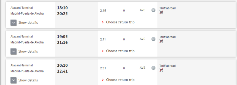 Прямого поезда в Мадрид нет, придётся ехать в Аликанте. В этом деле нам поможет трамвай, который курсирует с 6 утра до 10 вечера каждый час, в пути минут 40. Точное расписание смотрите здесь. До вокзала нужно немного пройтись, но там буквально 500 метров. Поезда часто отбывают в Мадрид.