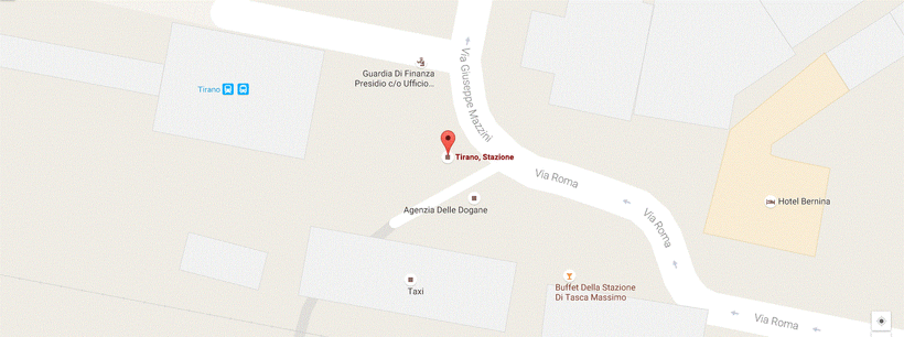 Прибытие осуществляется на железнодорожную станцию Тирано, расположенную на Via Giuseppe Mazzini.