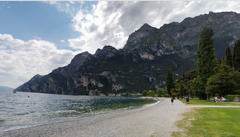 Сперва мы немного отошли от намеченного маршрута и заехали в Рива дель Гардо, что находится на севере озера Гарда. Это очень красивый и ухоженный городок, на берегу озера открывается великолепный пейзаж.