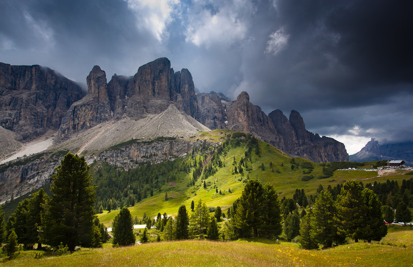 Доломитовые Альпы перепутать нельзя, это необычайно красивое зрелище! Скалы-зубья как будто выросли прямо из альпийских лугов. Восторг переполняет, кажется, что попал на картинку с рабочего стола, а через секунду из-за дерева выйдет фиолетовая корова из рекламы шоколадки.
