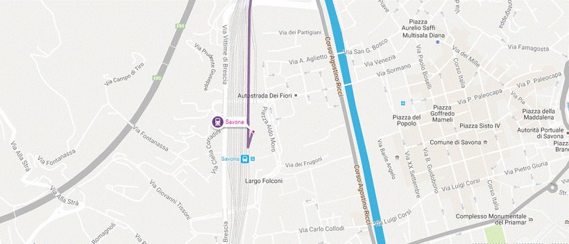 В Савону поезда прибывают на железнодорожный вокзал, расположенный на Via Vittime di Brescia, 18.