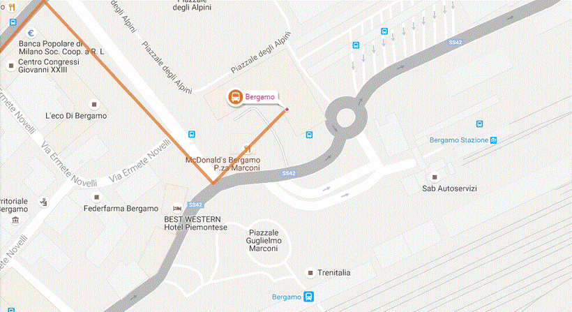 Автобусы в Бергамо отправляются с автостанции, расположенной на Via Bartolomeo Bono возле «Макдональдса». По времени путешествие занимает чуть больше одного часа.